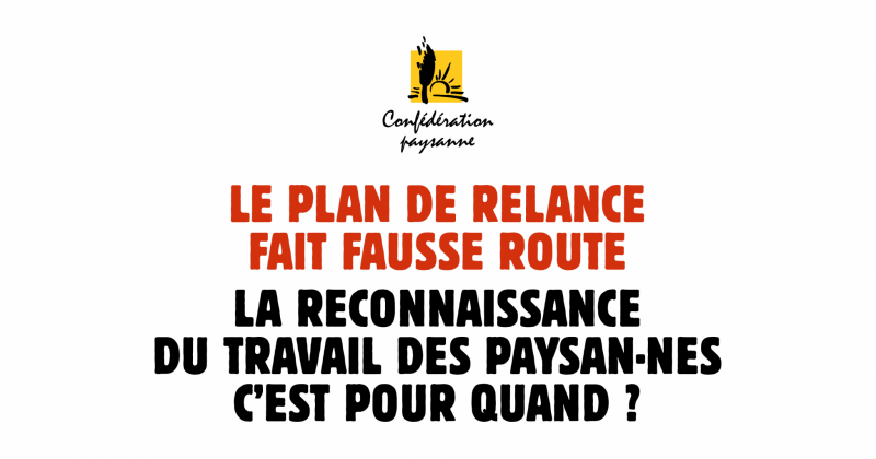 La Confédération paysanne s'exprimera contre l'adoption des enveloppes pour les aides aux agroéquipements censées optimiser l'usage des intrants. Les conditions de ces aides excluent une partie des investissements (matériel d'occasion, planchers trop élevés) et donc une partie des paysan.ne.s. Par ailleurs, que le plan de relance envisage la transition agricole sur les fermes par des aides à l'investissement est politiquement faible. Ces enveloppes vont financer les industriels de l'agroéquipement et risquent d'augmenter l'endettement sur les fermes. Ce ne sont pas des agroéquipements dont a besoin la transition, mais de plus de paysans.