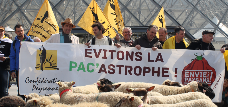 La PAC* devient la prime absolue à une minorité d'agriculteurs·trices dont la logique agroindustrielle les conduit à exploiter sans limites les terres agricoles et les ressources naturelles, au détriment de la grande majorité des paysan·nes, des citoyen·nes et de l'intérêt général.