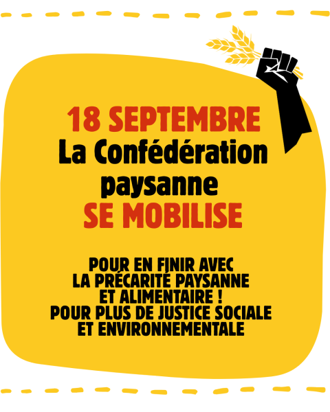 La Confédération paysanne, qui porte un projet de société, fait le choix de la convergence des luttes.Notre date de mobilisation, c'est le 18 septembre aux côtés du mouvement social ! Dans le prolongement de la mobilisation du 10, nous serons aux côtés des salarié·es pour plus de justice sociale, fiscale et environnementale.