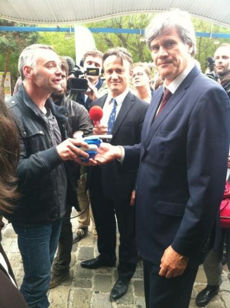 Finalement Stéphane Le Foll a daigné discuter avec nous, en refusant néanmoins la pièce de la salle de traite que lui tendait Laurent Pinatel.