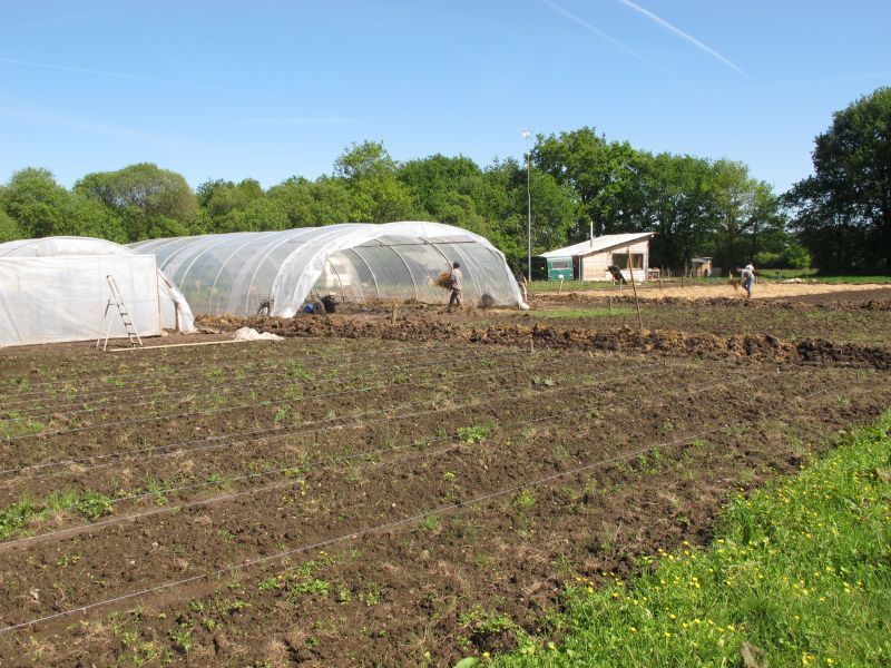 Avec le froid, le rythme se relâche un peu ; les cultures d'hiver remplacent les tomates dans la serre et l'engrais vert occupe les buttes extérieures. En attendant la prochaine saison.