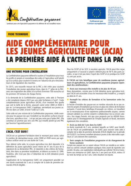 Fiche sur l'aide complémentaire jeune agriculteur (ACJA) Protéger et répartir pour atteindre un million de paysan.ne.s Transmettre pour installer un million de paysan·nes