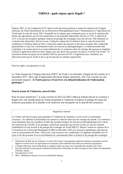 La question de la biodiversité agricole est la plupart du temps réduite à celle de sa conservation dans les banques de gènes, ou cryobanques pour les animaux, et à l'innovation génétique brevetée. Mais préserver la diversité agricole consiste avant tout à garantir le droit des agriculteur·rices et des éleveur·euses de la renouveler dans leurs champs pour l'adapter à la diversité des terroirs, des pratiques agricoles et des microclimats : conserver, utiliser, ressemer, échanger et vendre leurs semences, travailler en maîtrisant localement la reproduction de leurs animaux, échanger et protéger leurs savoir-faire, participer aux décisions nationales et à la recherche.