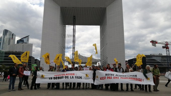 Action "Stop à la spéculation sur les céréales" le 5 mai à La Défense
