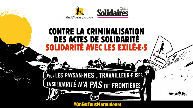 Nous n'acceptons pas la criminalisation des actes de solidarité et nous exigeons du ministère de l'Intérieur qu'il relâche nos camarades. La Confédération paysanne et l'union syndicale Solidaires dénoncent la criminalisation de plus en plus importante des actions syndicales. La solidarité ...
