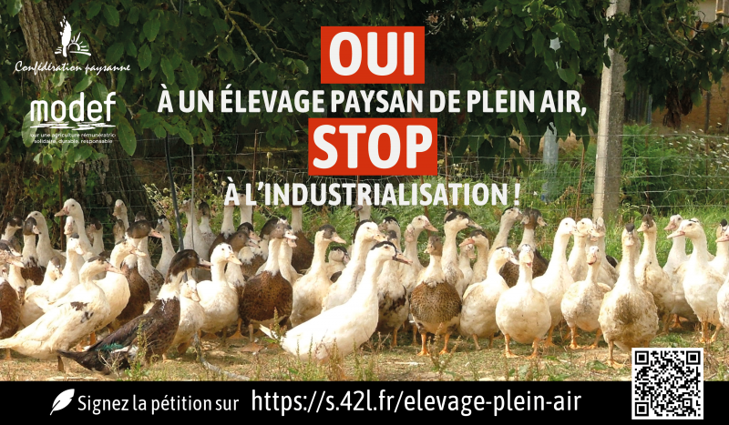 La Confédération paysanne et le MODEF lancent une semaine de mobilisation nationale pour défendre l'élevage plein air à compter du 3 février. Des rassemblements se tiendront ce 3 février dans le Béarn à Pau, en présence du porte-parole national de la Confédération paysanne Nicolas Girod, dans ...