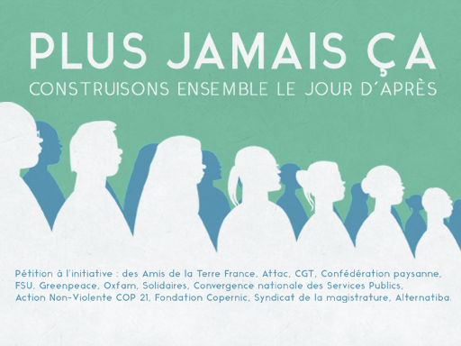 Merci d'avoir signé la pétition ! N'hésitez pas à partager sur les réseaux sociaux : Pour un jour d'après écologique, féministe et social : #PlusJamaisCa La nécessaire refondation de nos systèmes agricoles et alimentaires
