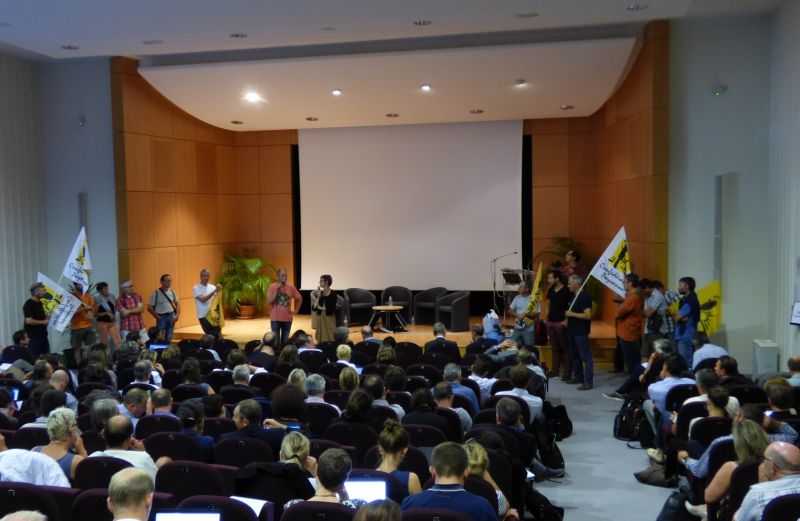 L'entrée dans l'amphithéâtre a été un peu houleuse quand le président de la chambre d'agriculture d'Ille-et-Vilaine a tenté de reprendre le micro. Mais les syndicalistes paysans ont pu s'exprimer durant une vingtaine de minutes. Ce qui a motivé cette action est l'impression que ces débats ...