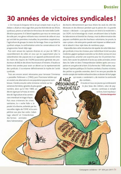 « Ce n'est pas la longueur de la vie qui compte mais ce qu'il y a dedans », disait un vieux sage. Alors, pour les festivités de nos 30 ans syndicaux, jetons un oeil dans le rétroviseur de notre belle Confédération paysanne. Et d'abord rappelons que nous ne venons pas de nulle part, nos gènes ...