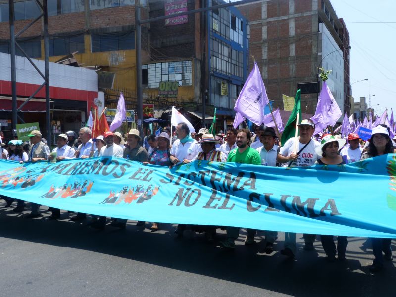 La Cumbre se déroule en plein centre de Lima, ville tentaculaire. Installée au milieu d'un parc, on y trouve de grands espaces, le marché alimentaire et artisanal, les stands d'associations et les grandes tentes vert pomme d'où s'échappent des discours, des témoignages, des voies fortes et ...