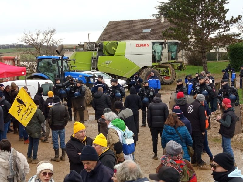 La police est intervenue violemment sur la ferme. Les policiers ont gazé les soutiens à la famille, extrait de force un paysan d'un tracteur. Deux paysans ont été interpellés et deux tracteurs saisis. Fait grave : c'est la première fois depuis le début de la crise de la dermatose nodulaire ...